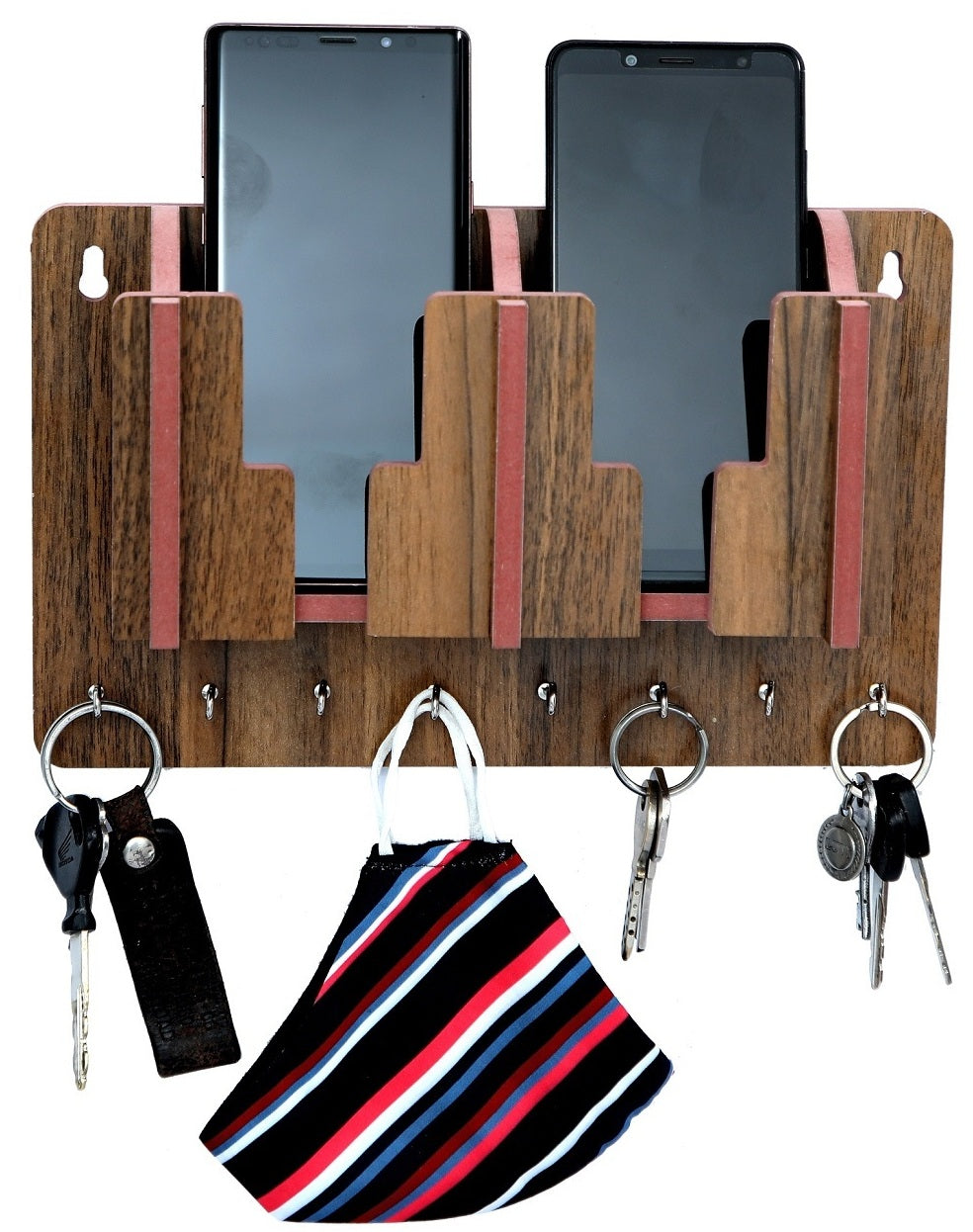 Dual Wooden Wall Mounted Key Holder with 8 Hooks & Mobile Stand