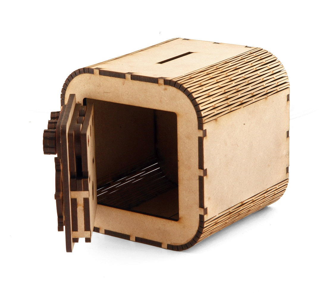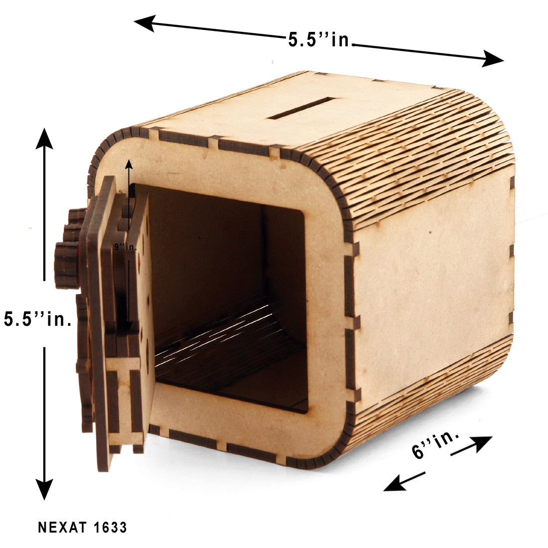 Keep your savings secure and safe with this beautifully crafted wooden piggy bank, designed to hold your coins under lock and key.