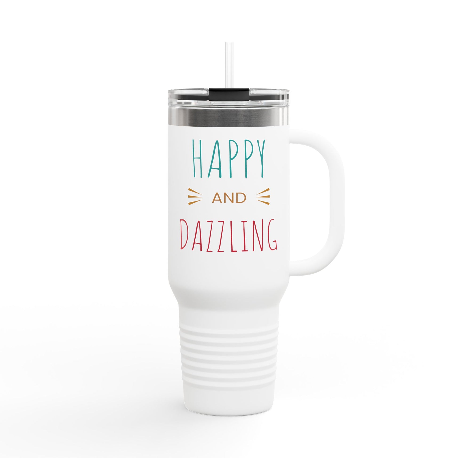 Happy Dazzling Insulated Travel Mug, 40oz - Perfect for On-The-Go, Gifts, Coffee Lovers, Travel Essentials, Joyful Sips