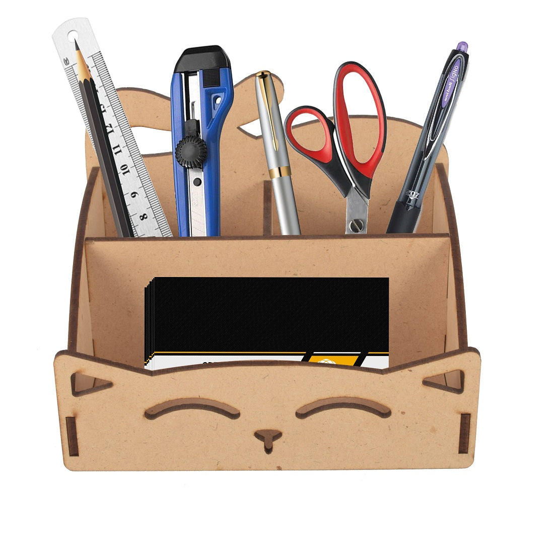 Elevate your desk with this beautifully crafted wooden business card holder. Made from wood with a stunning intricate design featuring decorative cutouts on the sides and top. Perfect for holding your business cards in style.